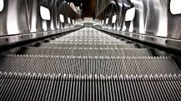 В сети появилось видео обкатки эскалаторов «Проспекта Славы» Автор ролика запечатлел панно, расположенное над эскалаторами в наземном вестибюле станции, а также интерьеры перронного зала.